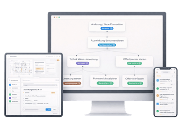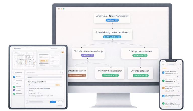 Wir denken in Abläufen – von Büro bis Baustelle. So entstehen klare Zuständigkeiten, saubere Übergaben und weniger Rückfragen.