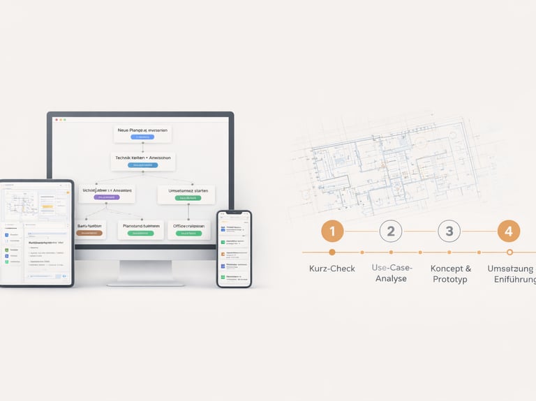 Massgeschneiderte Apps für Baustelle & Büro – schlank umgesetzt und eingeführt, ohne unnötige Komplexität.